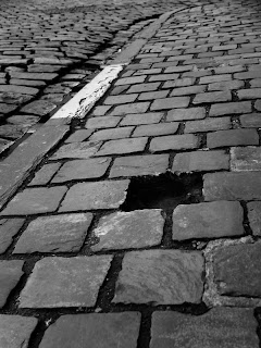 foto van een kasseiweg met een kassei eruitgenomen duidt voor mij op een